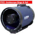 Meade 14" f/8 ACF Optical Tube Assembly #1408-80-01 includes a precision machined Losmandy-style dovetail rail mated to the tube with wide-stance radius blocks for rock-steady mounting, and front and rear dust covers. Focal length 2845mm. OTA weight is 29 kg (63 lbs).